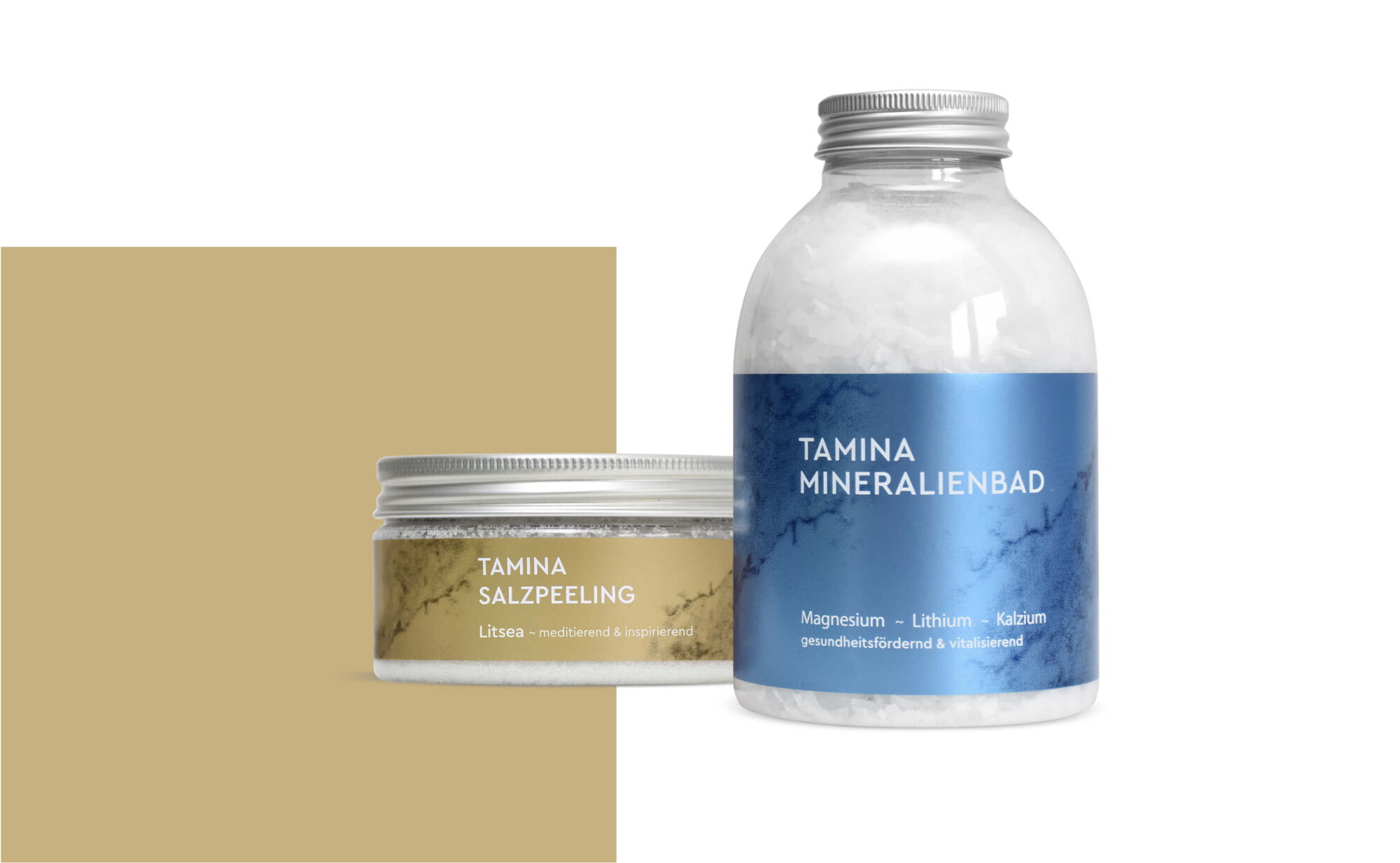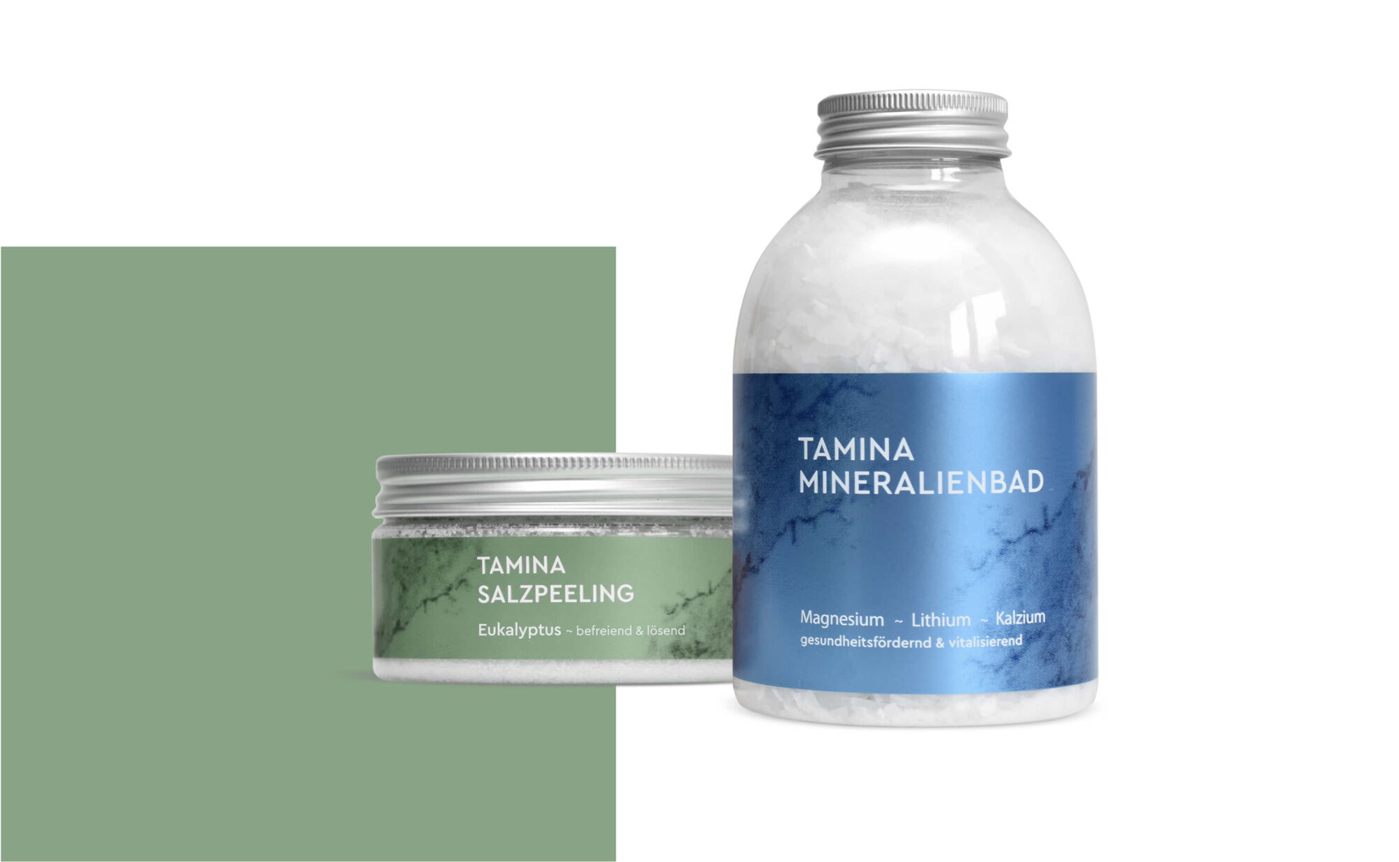 Salzpeelings mit beruhigenden oder kräftigenden Duftnoten sowie ein vitalisierendes Mineralienbad: Das Wellness-Erlebnis aus der Tamina Therme gibt es nun für zuhause. Optimal portioniert und hübsch verpackt. Wir haben das Verpackungsdesign für die hochwertigen natürlichen Produkte kreiert.